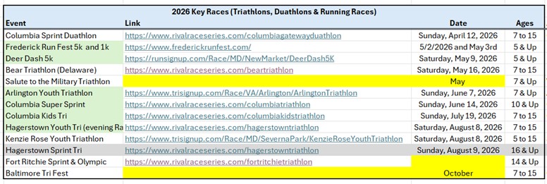 Welcome to our 6th year as a youth triathlon team where we will build on our previous season strength of using the Frederick Downtown YMCA (1000 North Market Street) as our main practice facility, along with Heritage Farm Park (9236 Devilbiss Bridge Rd) for additional outdoor training.